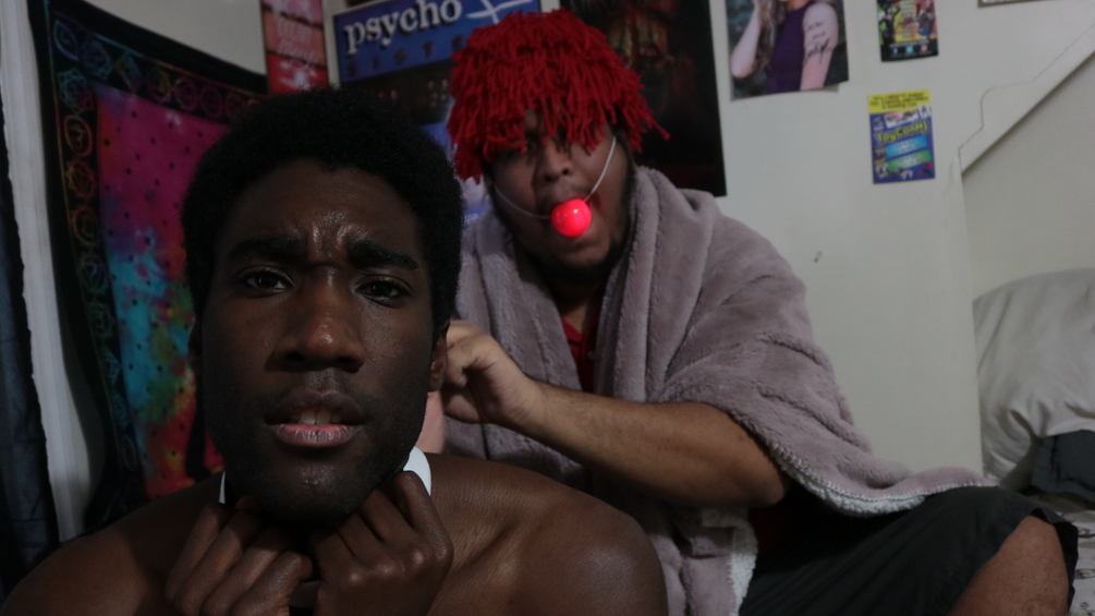 A bizarre psychopath clown holds a young man hostage, subjecting him to tickle torture and murder.