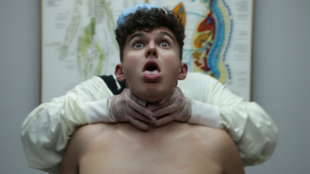 In this segment Andrew, an underwear model is hired by a mysterious photographer. After the shoot, he somehow finds himself in the Lawrence Psychiatric Institute Morgue where he is knocked out, dragged, stripped, strangled, toe-tagged, then body bagged...in what could only be the ultimate UNDERWEAR MODEL'S MORGUE NIGHTMARE!