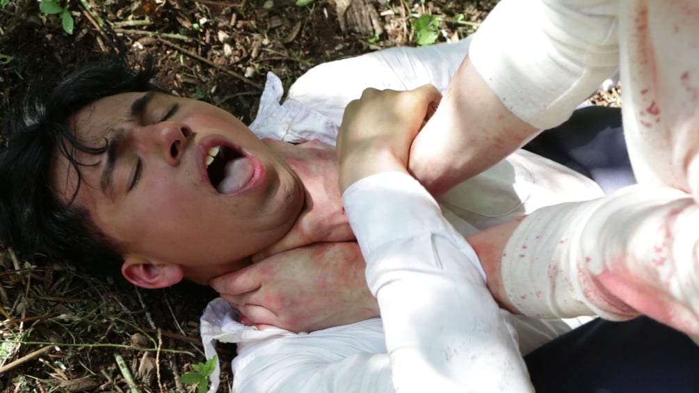 This scene shows Bundy at work, pretending to be disabled, then picking up a college girl in his classic 1975 yellow VW beetle then murdering her, until a teenage boy unexpectedly interrupts the crime.